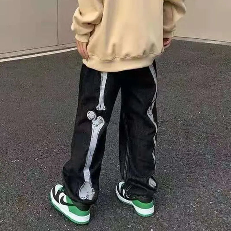 Skull Hand Bone Pants are the ideal fashion statement for the stylish man. In order to achieve a timeless yet modern style, this elegant yet timeless jean design has been refreshed with current vibes and ultra-wearable silhouettes. Any body shape or style will look good thanks to the easygoing, straight cut and relaxed fit. These pants make a bold fashion statement that will be noticed wherever you go, with embroidered skull and bone patterns. The well-fitted seams produce clean lines and an overall sleek finish that is ideal for any occasion. The garment is constructed from high-quality denim fabric for longevity. The Retro Skull Hand Bone Pants will let you stand out from the crowd in uncompromising style while also adding a sense of rebellion to your clothing.
